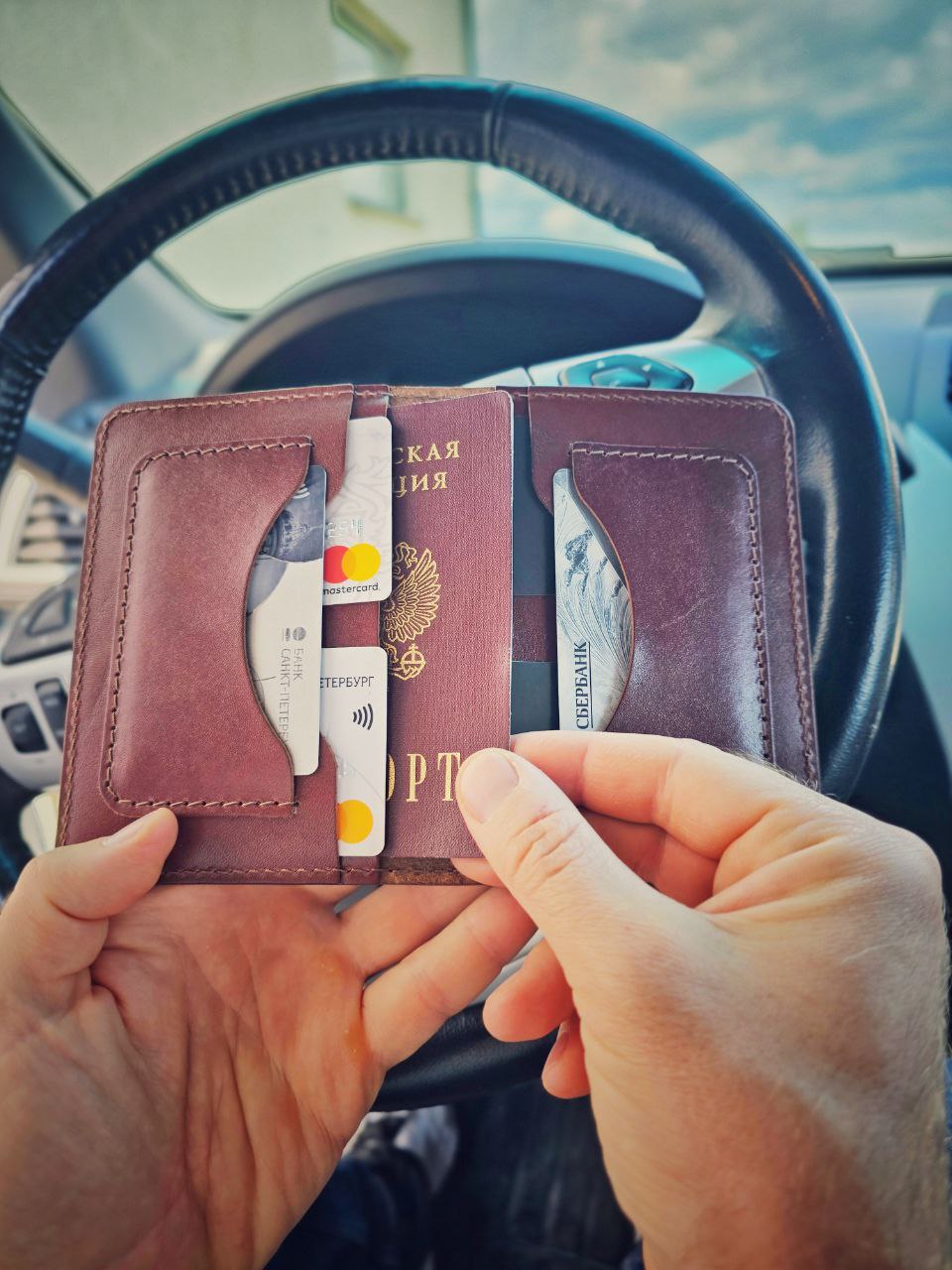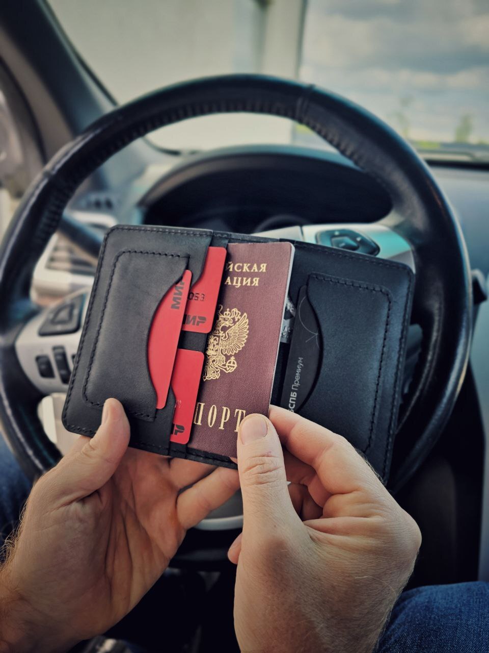 Кардхолдер разработан специально для автовладельцев. Кармашек для хранения ВУ и отдел для СТС 2 отсека для карт и карман для хранения наличных.