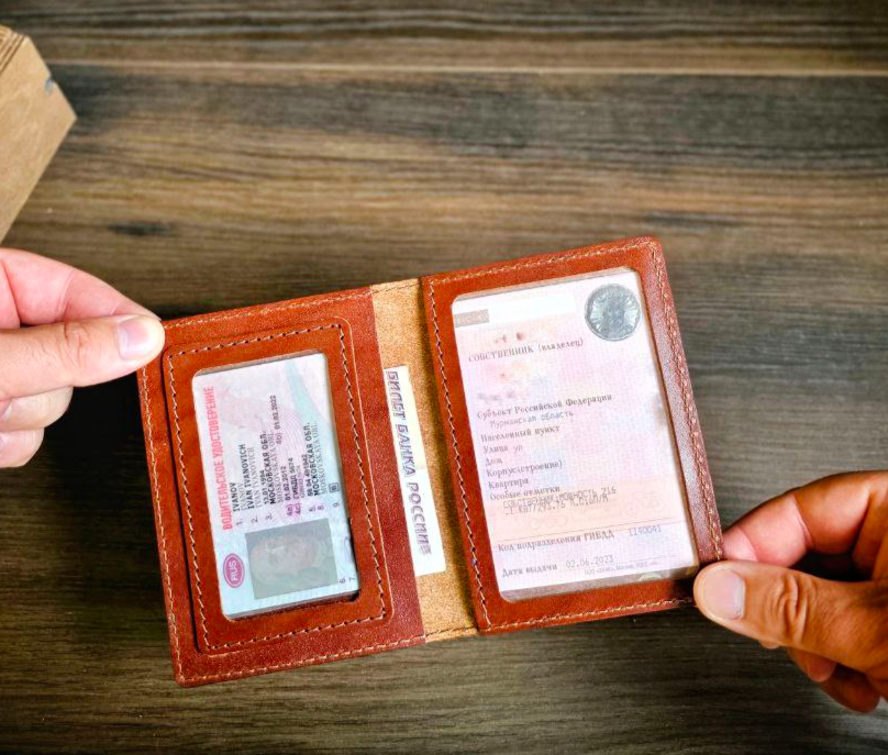 Обложка для документов на авто: водительского удостоверения, СТС, страхового полиса. Можно поместить даже паспорт. Изготавливается по индивидуальному заказу из натуральной кожи. Ручная работа. • 6 отсеков • полноценный отсек для наличных • размер 10*14 см (в закрытом) • размер 21*14 см (в открытом) • цвет кожи любой из нашей палитры • срок изготовления от 3-х до 7 дней • доставка в любой город РФ 🌀 По вашему желанию на изделие можно нанести любой символ: логотип марки автомобиля, имя, инициалы, цифры. На каждое изделие, по умолчанию, мы наносим наш фирменный логотип.
